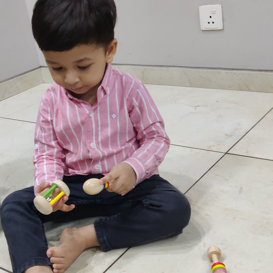 Wooden Toys‘: The wooden rattle toy set has smooth surfaces and edges, allowing babies to play safely.